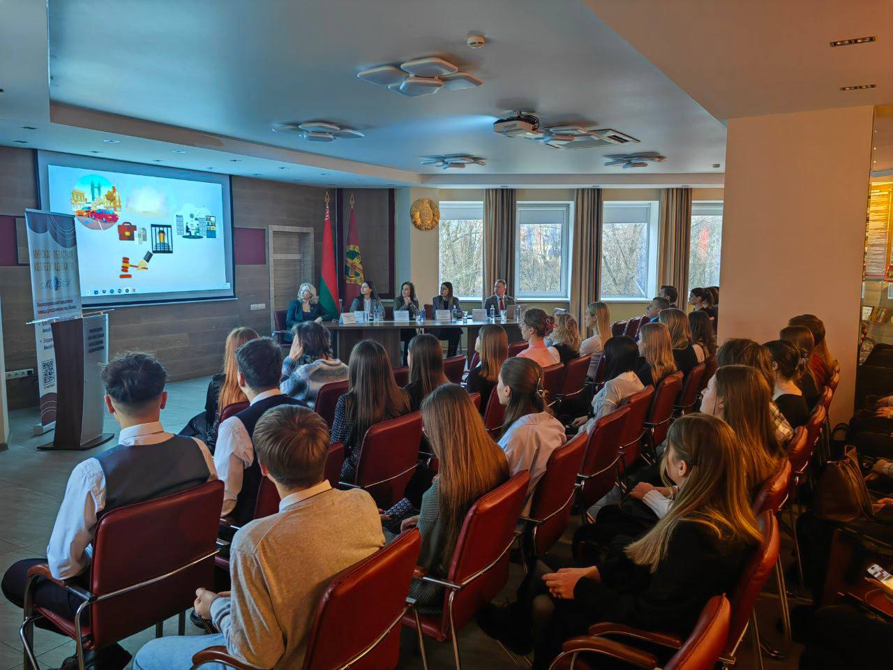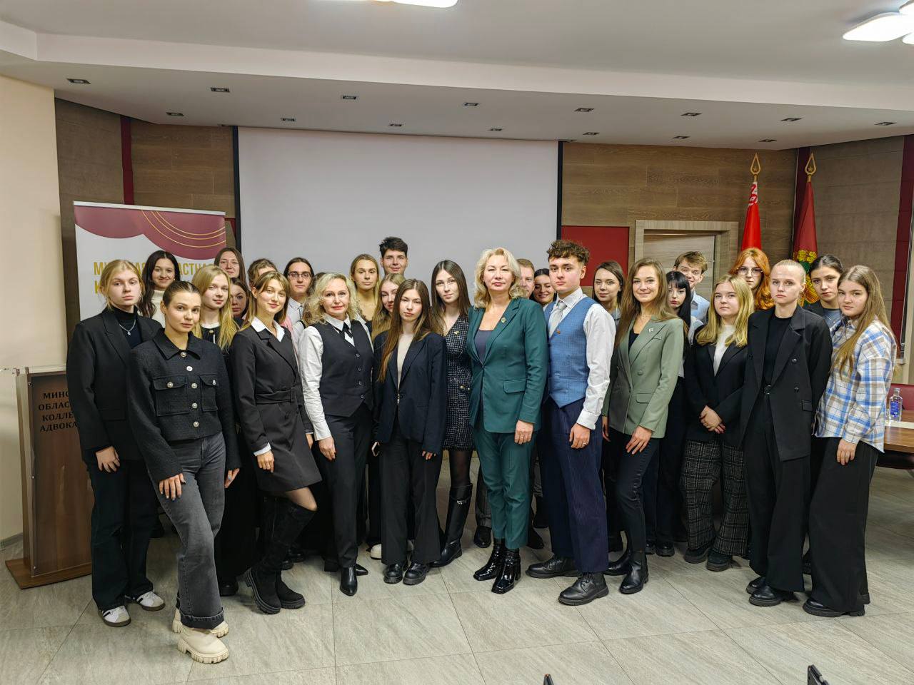 В формате открытого диалога о профессии адвоката студентам рассказали председатель Коллегии Татьяна Бочарова, председатель совета молодых адвокатов МОКА Александр Сенько, его заместитель Елена Логвинович, члены СМА МОКА Дарина Стригельская, Андрей Шимонович и Анастасия Рапинчук.