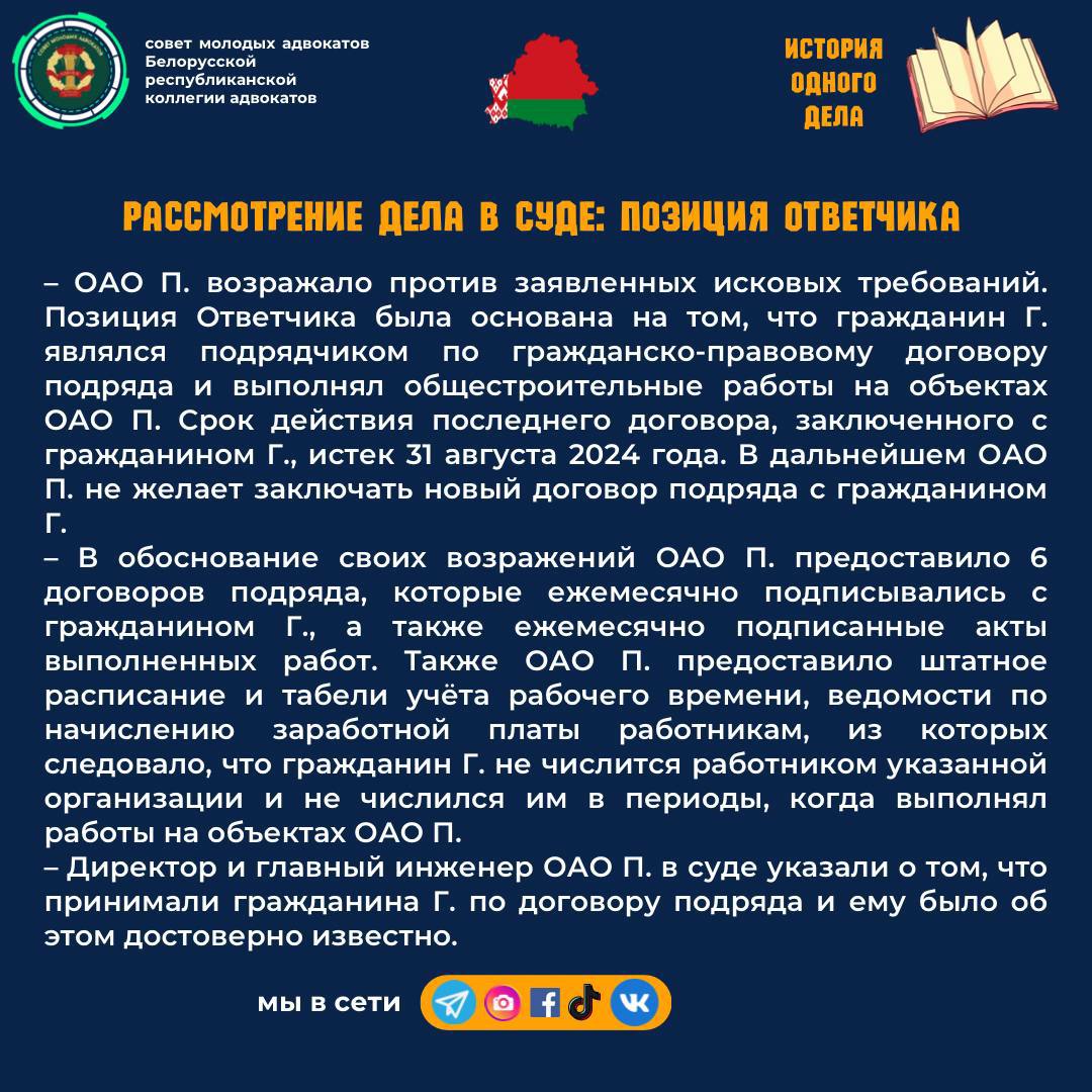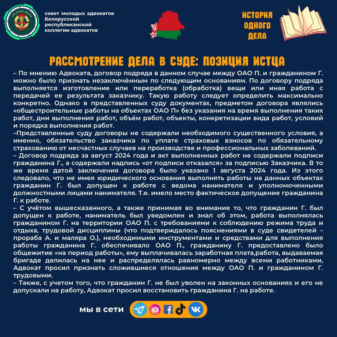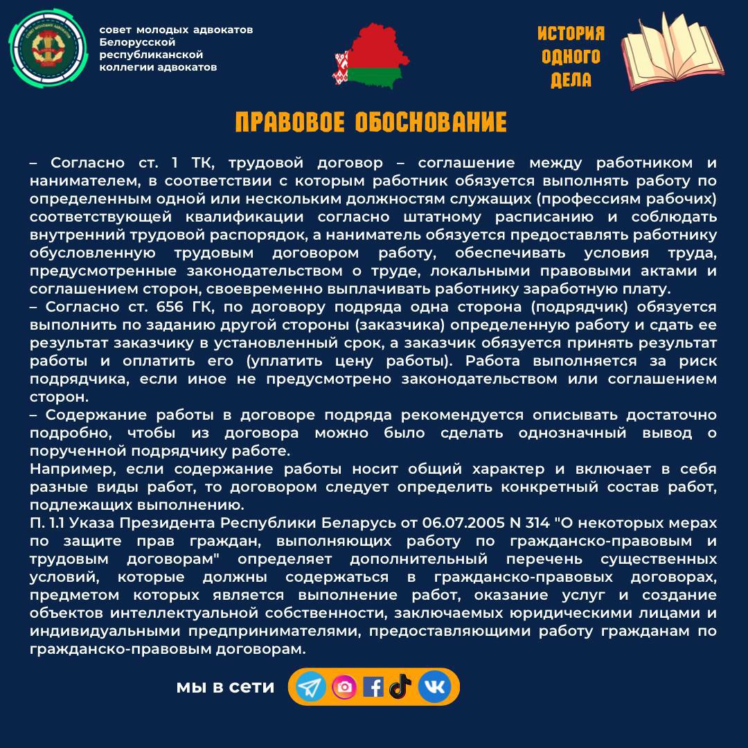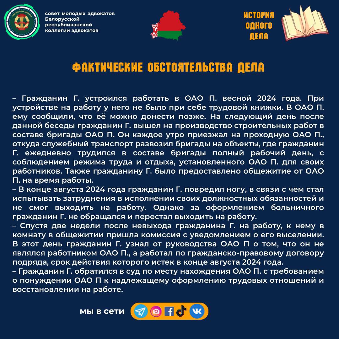 ИСТОРИЯ ОДНОГО ДЕЛА. ДЕЛО № 102: «О признании отношений трудовыми и восстановлении на работе» было в производстве адвоката юридической консультации Смолевичского района Коробовой Анны Александровны.