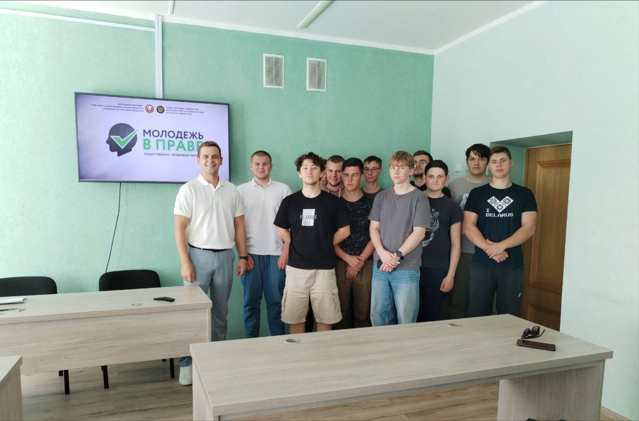 Председатель комиссии по вопросам агропромышленного комплекса Молодежного совета при Совете Республики Национального собрания Республики Беларусь Павел Шайтанов и молодой адвокат юридической консультации Пуховичского района Лиана Любочко провели встречу в рамках общественно-правового проекта «Молодежь в праве» на базе учреждения образования «Марьиногорский государственный ордена «Знак Почета» аграрно-технический колледж имени В.Е.Лобанка».